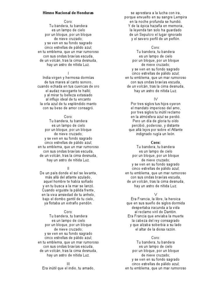 Explicacion Completa Del Himno Nacional De Honduras Estrofas Y Coro Redhonduras Com El Referente De Honduras